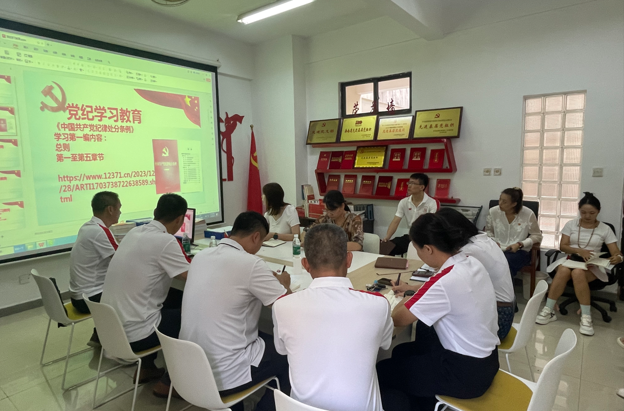 2024年5月8日下午15:00,beat365在线体育教工各党支部在会议室组织召开主题党日专题学习会,集中学习《中国共产党纪律处分条例》第一编总则第一至第五章。公司纪委钟慧聪,陈国艳同志出席教工第三党支部会议,公司领导班子成员、党委委员杨腾、孟东明、隋国增、王博文参加各党支部主题党日专题学习会议,教工各党支部党员列席会议。会议由公司各党支部书记主持。