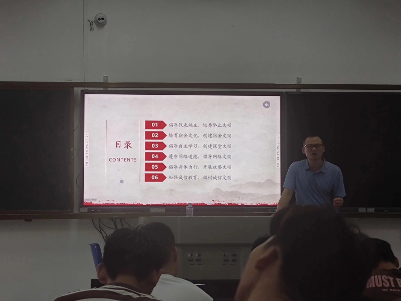 第二部分着重讲了宿舍文明。杨腾书记从节约环保、和谐相处、违规电器等方面解读了宿舍文明的内涵。