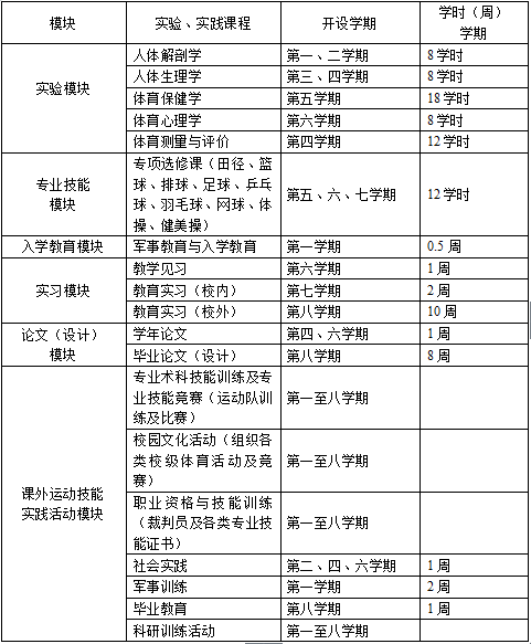 实践教学是本专业教学计划中不可或缺的重要教学环节,是本专业人才培养模式创新的重要研究项目,也是有效促进本专业员工从理论知识和运动技能向实践能力转换、达到专业人才培养目标的重要实践性环节。